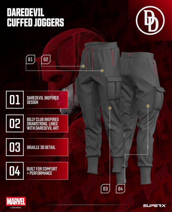 Inspired by the iconic red suit and reworked as modern training apparel, this limited collection brings Daredevil’s unmistakable look into performance-driven design. Every piece is built with a streamlined silhouette and durable construction, designed to move cleanly through training sessions and everyday wear.This collection is made as training gear. The result is apparel that holds its shape, stays comfortable through movement, and delivers a sharp, structured look the moment it’s on. This is Daredevil, reimagined by SuperX. In collaboration with Marvel.